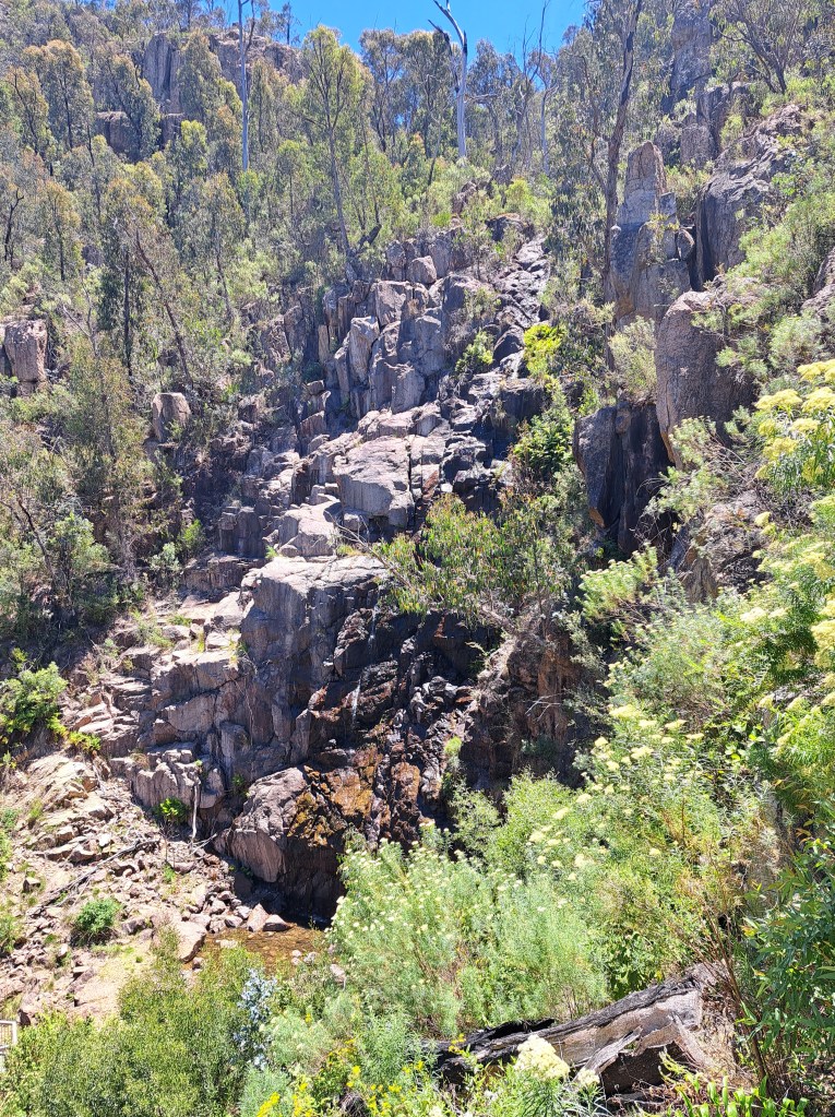The next day we drove up to Burrowa Pine Mountain National Park. We wanted to inspect a couple campsite we might possibly use in the future. We visited a waterfall that was now a trickle due to hot day weather (90 that day).